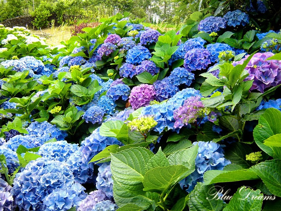 Terceira is often called the Lilac Island of the Azores because of the pink and blue flowers of the Hydrangea that literally cover and divide the land in all directions. Hydrangea hedges grow wild over the entire island.